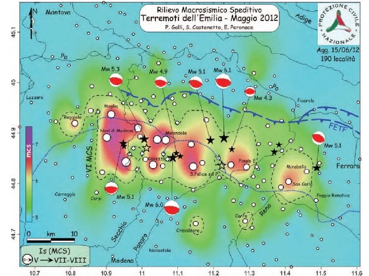 Attività preliminari già avviate Agenzia regionale Protezione Civile PER OGNI COMUNE Piano di protezione civile URSV -DPC In nostro possesso Piano di emergenza Alto Ferrarese del 2008; approfondimenti per Mirabello e Sant’Agostino Il SGSS RER ha in corso varie attività di scambio dati e coordinamento con INGV, DST - Uni. SI, INOGS e vari istituti del CNR (monitoraggi e indagini geofisiche nei comuni interessati dal terremoto fino dalla scossa principale del 20 maggio). Il SGSS RER ha anche coordinato gli studi per la valutazione degli effetti di liquefazione a S. Carlo (S. Agostino) e a Mirabello (FE). Lo stesso SGSS RER coordinerà anche le indagini in loc. Scortichino (Bondeno, FE) per la valutazione della stabilità dell’argine diversivo (ordinanza n. 71 del 13/11/2012).