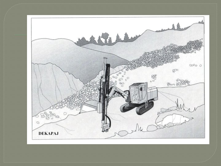 YERÜSTÜ PATLATMA DELİĞİ SONDAJLARI • Sığ sondaj makineleri ile delici makineler birçok yönden benzerlik gösterirler. Genellikle patlatma amaçlı kısa mesafeli (< 25 -30 m) sondajlara delik delme denir. • Delici makineler kısa delikler delerek sürekli hareket ettikleri için sondaj sıvısı (çamuru) kullanmak pratik değildir. Çamur yerine basınçlı hava kullanılır • • Delme işlemi baskı, darbe ve dönme ile gerçekleşir. Parçalanan kayaç kırıntıları sondaj sıvısı ile dışarı atılır. • • Özellikle sert ve aşırı sert kayaçların delinmesinde uygulanır. Ayrıca, patlatma deliği delen delicilerde yaygın olarak kullanılmaktadır. • • Tabanca (çekiç) adı verilen darbe yapan mekanizma, delicilerde yerüstünde veya delik dibinde matkap üzerinde olabilmektedir. • Sondaj donanımlarında ise tabanca delik dibindedir.