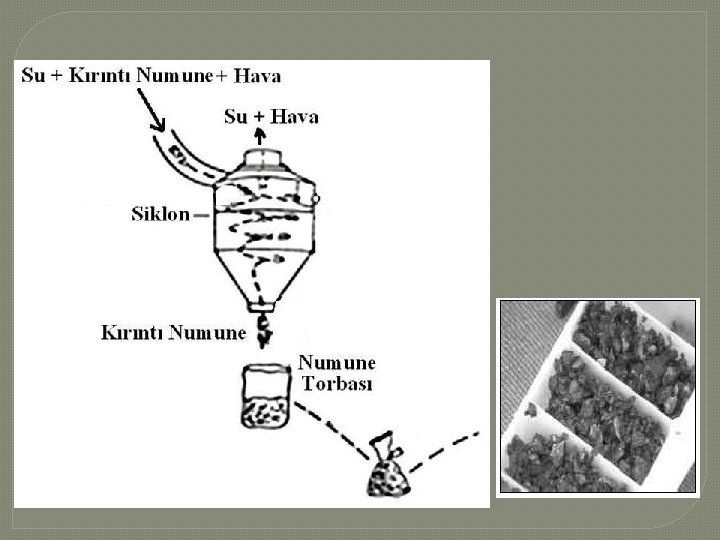 2. TERS DOLAŞIMLI KUYUDİBİ TABANCALI (ÇEKİÇLİ) SONDAJ YÖNTEMİ � Ters dolaşımlı kuyudibi tabancalı sondaj, sürekli olarak formasyondan numune alma imkanı sağlayan, kırıntı taşıyıcı olarak hava, su, köpük kullanılan sondaj yöntemidir. Bu yöntemde, kompresör tarafından üretilen hava, çift duvarlı tij içerisinden geçerek matkaba ulaşır. Kırıntılar ise çift duvarlı tij merkezinden başlık aracılığıyla yüzeydeki bir siklona iletilir ve torbalara alınır.