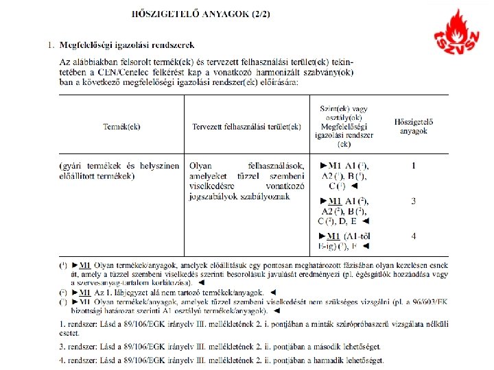 • Az MSZ 7573: 2002 és MSZ 7574: 2009 módosítását kezdeményező megkeresés érkezett az MSZT-hez, amely javasolja a szabványok „Az alkalmazási területhez kötött feltételek” című (5. 1. , illetve 4. 1. ) szakaszának kiegészítését további három bekezdéssel. • Ez a javasolt kiegészítés többféleképpen megközelítve tájékoztatja a szabványalkalmazókat arról, hogy a tűzvédelmi követelményeket jogszabály tartalmazza, jelenleg melyik a hatályos rendelet, továbbá arról, hogy a jogszabály előírásait is figyelembe kell venni és érvényre kell juttatni. Ez nem célja, feladata a szabványoknak sem a tűzvédelmi, sem más nemzeti szabályozást illetően. • A szabványok ilyen tartalmú módosítása tehát nem indokolt, az esetleges félreértések, helytelen értelmezések elkerülése végett azonban mindkét szabvány esetében célszerű az „Alkalmazási terület” című (2. , illetve 1. ) fejezet első mondatát a következőképpen kiegészíteni: „Ez …… szabályozza, de nem tér ki a tűzvédelmi szempontokra. ”