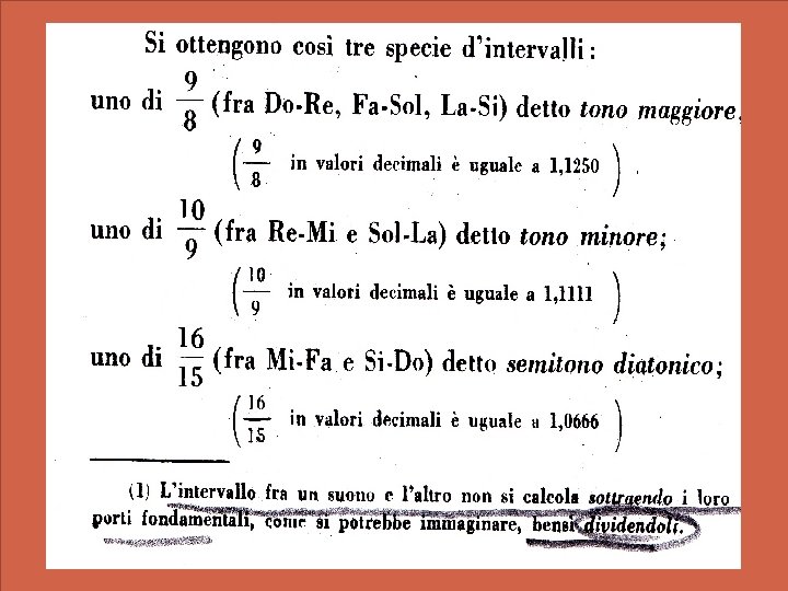 Ricapitolando i rapporti: �DO 1 RE 9: 8 MI 5: 4 FA 4: 3 SOL 3: 2 LA 5: 3 SI 15: 8 DO ottava sopra 2