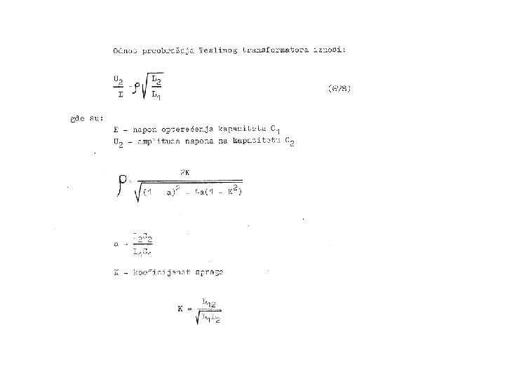 Izbor parametara Teslinog transformatora • Induktivnost sekundarne prigušnice: (Wheeler-ova formula) • Induktivnost primarne prigušnice: (Iskustvena formula)