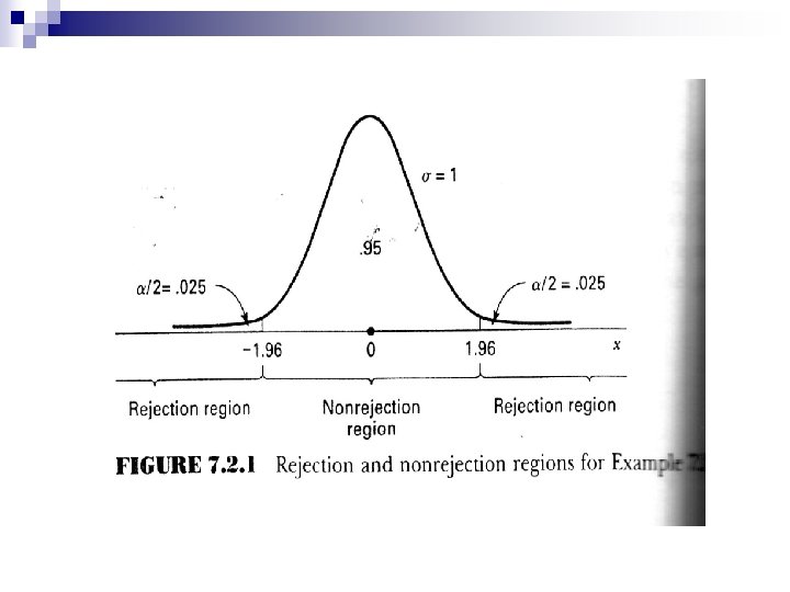 P value P is the probability of being wrong when H 0 rejected. n When the level of Significance is set at 5% and the test statistics fall in the region of rejection, then the p value must be less than 5% i. e. (p<. 05). n When we will accept H 0 (p>. 05). n