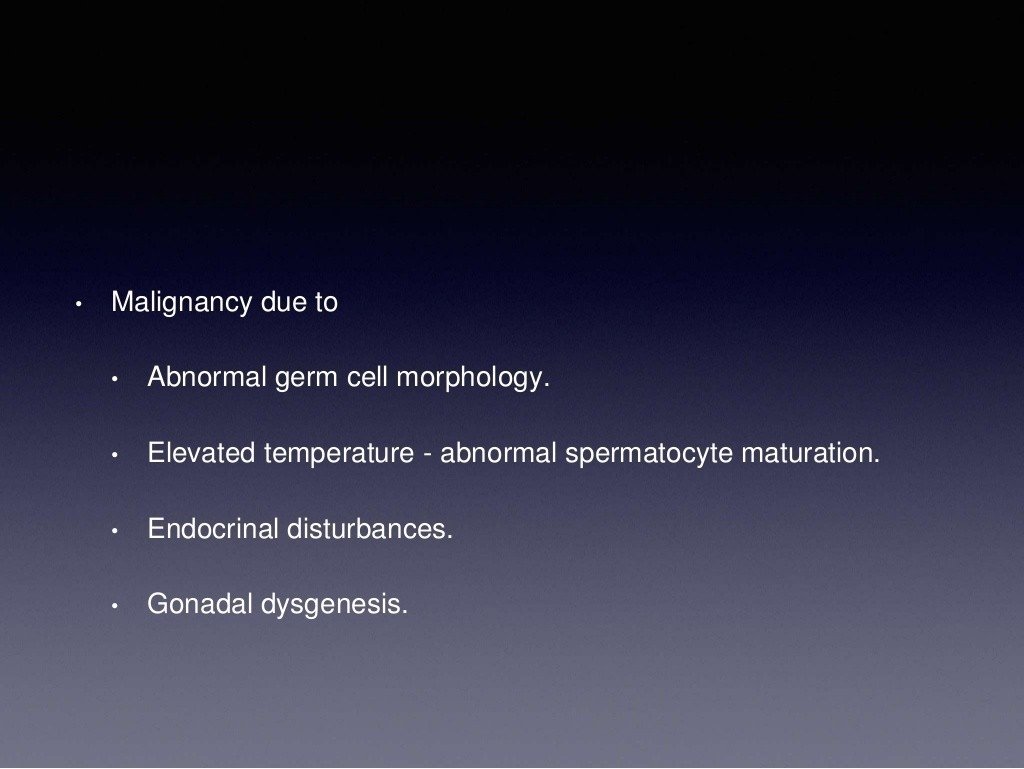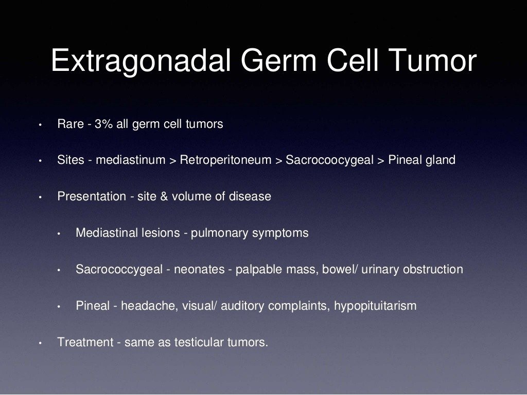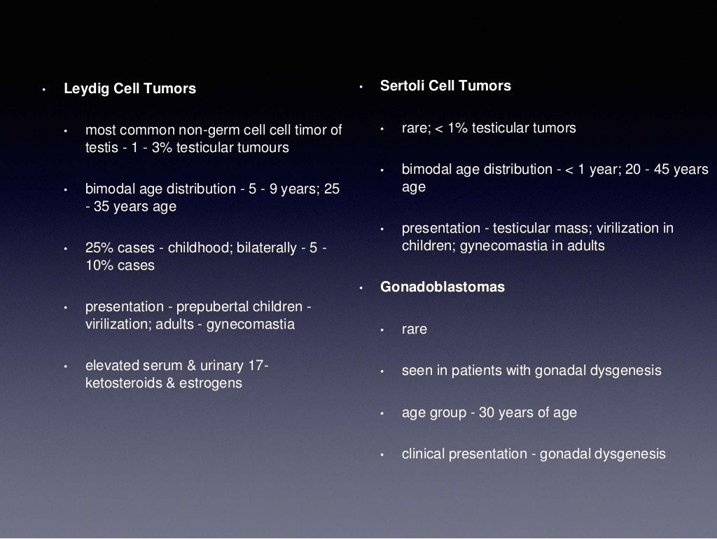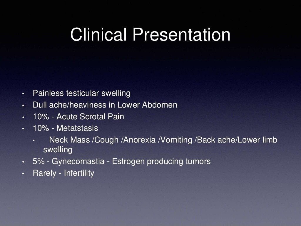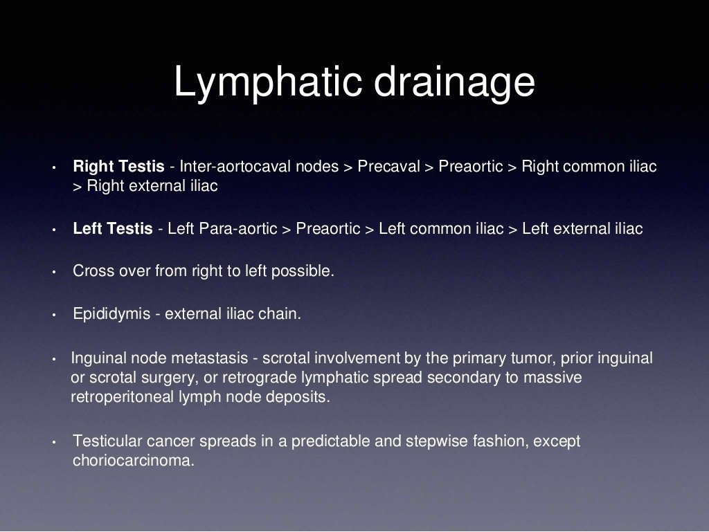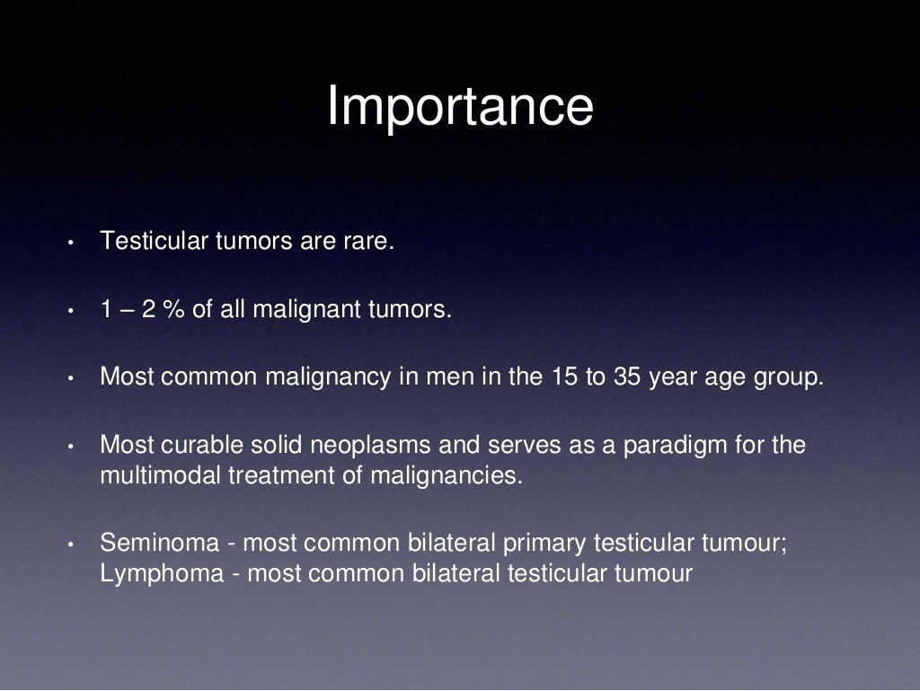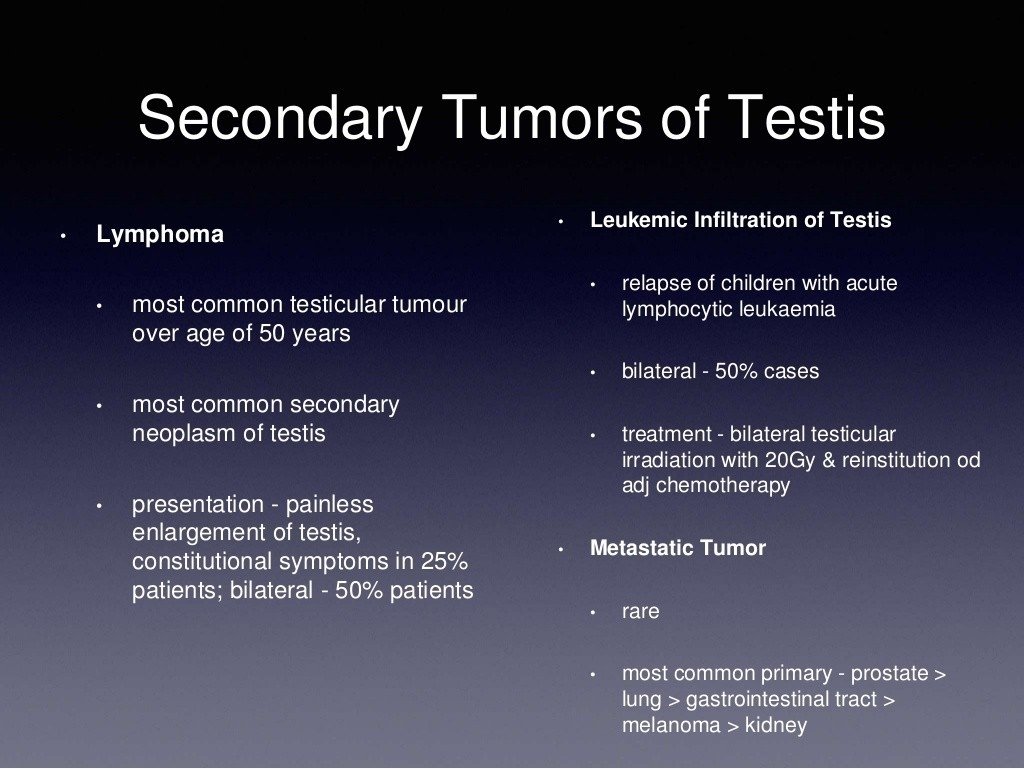 STAGING OF TESTICULAR CANCER • Stage I: tumor confined to the testis • Stage II: spread to regional lymph nodes • IIA: <2 cm in size or < 6 positive nodes • IIB: 2 -5 cm in size or > 6 positive nodes • IIC: large and bulky abdominal mass, usually > 5 -10 cm • Stage III: spread beyond retroperitoneal nodes or above diaphragm or visceral disease • Stage IV: hematogenous spread