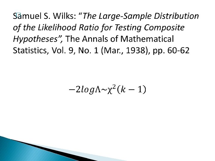 testing composite hypotheses is possible Quite unusual: best method for estimating parameters: Mo. M (method of moments) Example:
