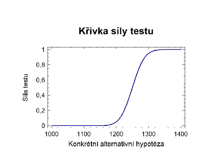Grafický zápis chyby II. druhu (pro konkrétní alternativu) Operativní charakteristika Křivka síly testu (Power Curve)