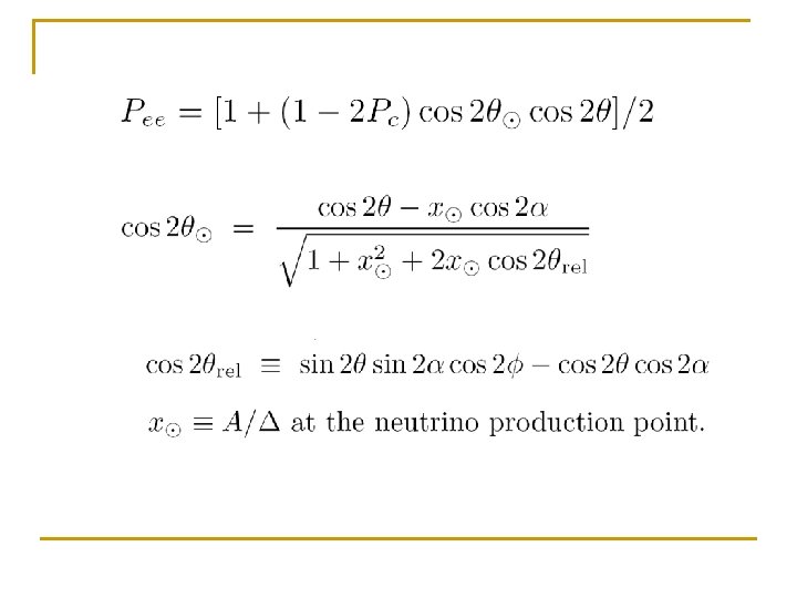 n Look for distortions in the shape of the survival probability at intermediate E q Lack of upturn below SK/SNO threshold 1 10 E/Me. V