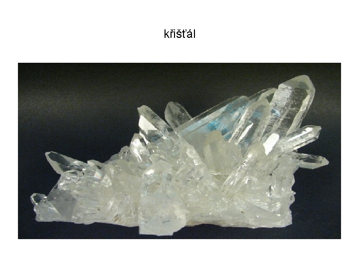 • • oxidy oxid křemičitý – po vodě nejstudovanější chemická sloučenina – tvoří minerál křemen, křemen je obsažen v žule, pískovci • • • odrůdy křemene: křištál, růženín, ametyst (fialový), citrín (žlutý) v nedokonalých krystalických formách: chalcedony (různé barvy), chrysopras (zelený), karneol (červený), achát (pruhovaný), jaspis (různé barvy), heliotrop ( zelený s červenými skvrnami), pazourek (často černý – inkluze uhlíku), hydratovaný křemen tvoří opály • • chemicky odolný vůči všem kyselinám s výjimkou HF • rozpouští se v roztavených hydroxidech Si. O 2 + 2 KOH → K 2 Si. O 3 + H 2 O