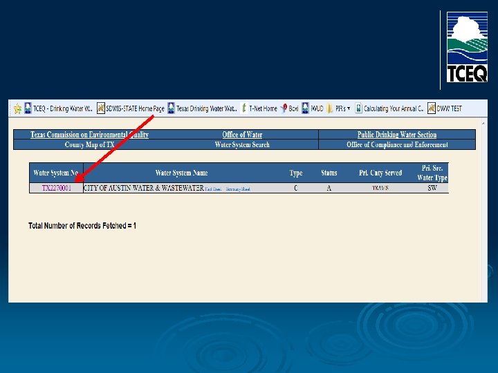 DWW AS A TOOL • One of our most powerful ways of communicating with the regulated community • Updates are live and in real time • Contains important content related to sample schedules, results, and points of contact at the PWS