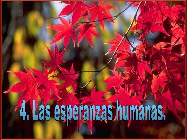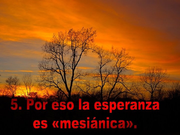 * Bienaventurados los que trabajan por la paz porque ellos llegarán a la plenitud de la vida filial (Mt 5, 9): los que se consagran a hacer de la tierra un banquete, cooperando con los hombres a satisfacer sus esperanzas legítimas, se sentarán como hijos en el banquete escatológico. * Por otra parte, la esperanza teologal relativiza y purifica las esperanzas humanas. Por un lado, hace ver su carácter relativo, por otro, las purifica de todos los elementos negativos, aquellos que realmente no realizan a la persona.