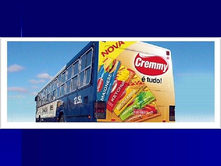 SIDEBUS n Mídia elaborada em adesivo em vinil de alta performance com tamanho médio de 5, 30 metros de largura por 1, 20 metros de altura, fixado nas duas laterais dos ônibus. n Durabilidade de aproximadamente de 6 meses. n É uma mídia de grande impacto de visualização devido ao tamanho do veículo e às distâncias percorridas. n Excelente para sustentação e fixação da marca