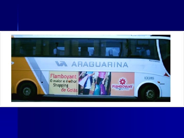 BACKBUS n O Backbus também é uma mídia elaborada em adesivo de vinil de alta performance com tamanho médio de 2, 90 metros de altura por 2, 40 metros de largura, que aplicado ao ônibus ocupa toda a parte traseira do veículo. n Durabilidade de aproximadamente de 6 meses.