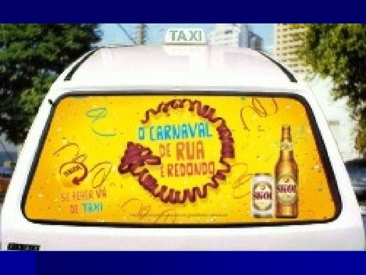 TAXIDOOR n n A mídia em táxi se diferencia pela sua mobilidade, adesivos fixados nos vidros traseiros dos táxis, rodam com a marca em varios pontos da cidade. Possibilidade de regionalização da campanha conforme a escolha do ponto de táxi: Centrais, Aeroporto, Universidades, Shopping Centers, Hotéis, Escolas e Avenidas Principais.