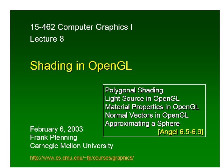 Textures Texture Object • An Open. GL data type that keeps textures resident in memory and provides identifiers to easily access them • Provides efficiency gains over having to repeatedly load and reload a texture • You can prioritize textures to keep in memory • Open. GL uses least recently used (LRU) if no priority is assigned