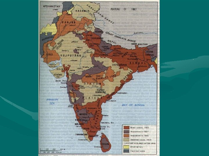 The British Empire • Asia – Consolidation of the British Raj continued as the British government expanded its formal rule over greater territories in northern and western India. – In 1877, Queen Victoria was declared Empress of India. – British control expanded eastward into Burma, and Malaya and northward to the border with Afghanistan (created as a buffer against the Russians)
