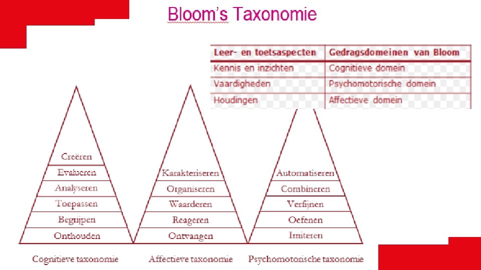 Soorten leerdoelen (Bakx, Ros, Teune 2012) - Kennis- en inzichtdoelen - Vaardigheidsgeörienteerde doelen - Attitudegerelateerde doelen