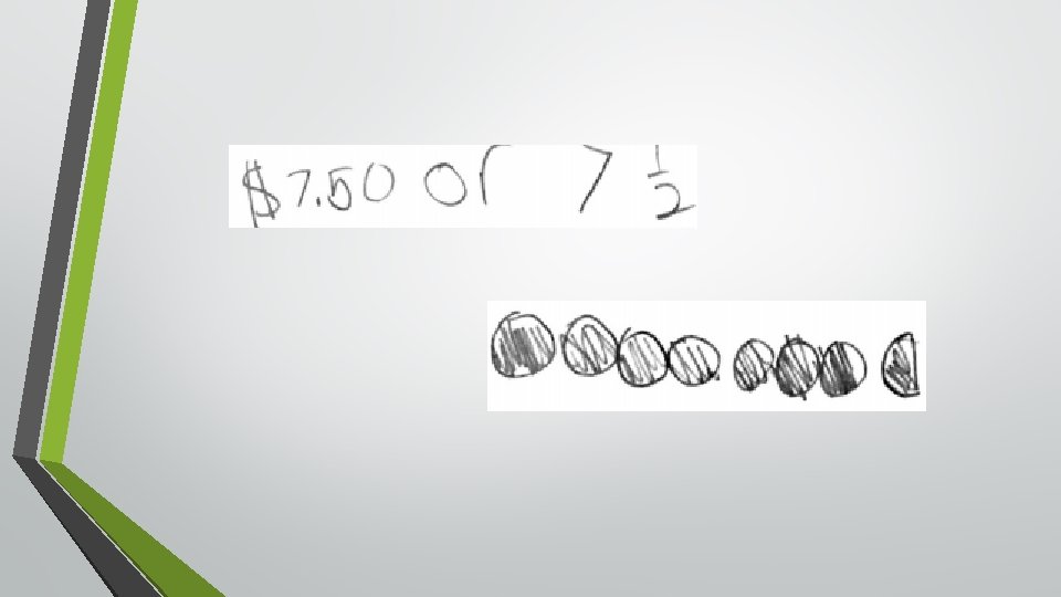 Week 2 Instruction For this week of instruction we decided to encourage the use of specific language, such as “groups of”, along with the use of drawing and pattern blocks. We introduced whole number times fraction number sentences and word problems that involved modeling repeated addition. Students’ work on the problems revealed their understanding of language and visual models, as exemplified in the classroom artifacts below.
