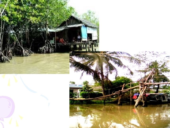 Tập đọc Đất Cà Mau. Tìm hiểu bài 2. Cây cối trên đất Cà Mau mọc ra sao? Người Cà Mau dựng nhà cửa như thế nào? * Cây : - Mọc quây quần thành chòm, thành rặng. - Rễ phải dài, cắm sâu vào lòng đất * Nhà: - Dựng dọc những bờ kênh. - Nhà nọ sang nhà kia phải leo trên cầu bằng thân cây đước.