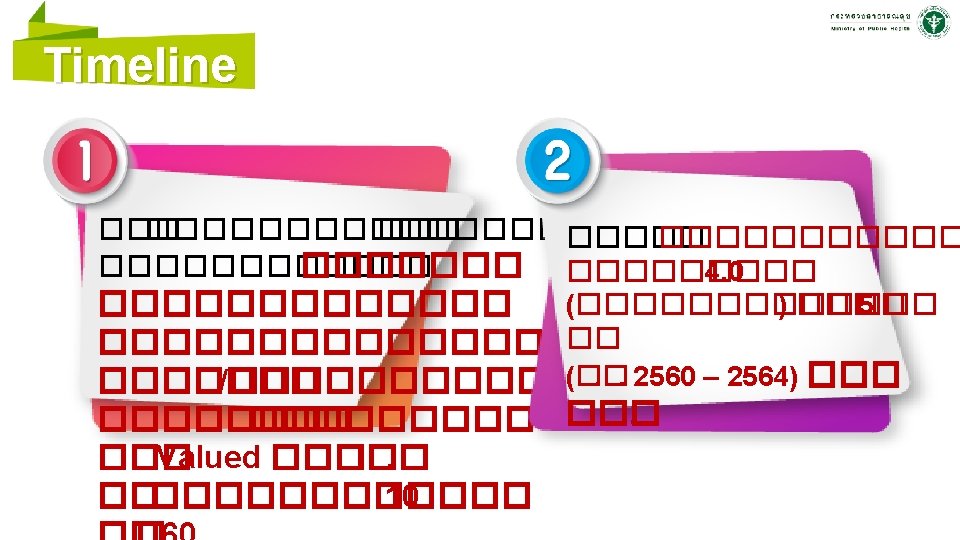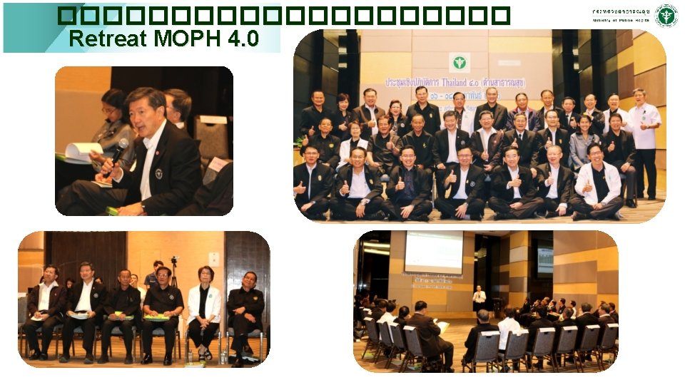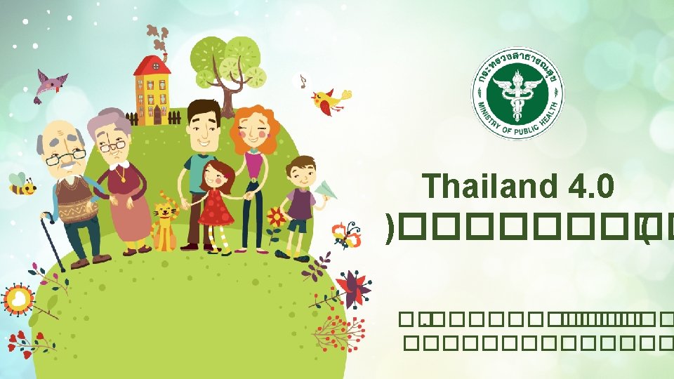 $ MOPH 4. 0 ������� Value-Based Healthcare Productive Growth Engine Green Growth Engine GREEN and CLEAN hospital ������ 20 �� ���� Health ���������������� tech ������ Medical tech. ���������� �� 10 robotic Health Wellness (Medical Tourism( Digital Health Inclusive Growth Engine PHR/HIE/HDR Food Safety Biotech Biomedical Herb Service. Smart ������� citizen ����� 4. 0 PP&P �������� �� PCC/Service plan ���� Action Plan MOPH 4. 0