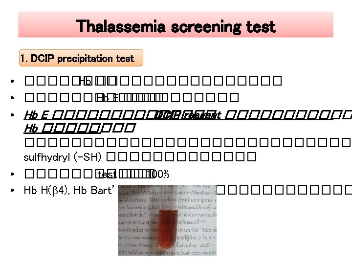 Thalassemia screening test 2. DCIP precipitation test : �������� ����������