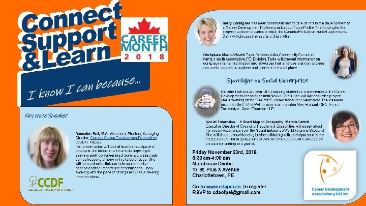 Executive members who truly are dedicated and passionate about Career Development. Lisa Chaisson, PEI ANC – Chair Kim Murphy, CDS - Co-Chair and Secretary Mike Breault, Grant Thornton - Treasurer Gloria Welton, The EJ on PEI- Communications, Treasurer Assistant