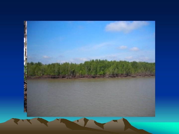HỆ SINH THÁI RỪNG NGẬP MẶN CẦN GIỜ Thành phần vô sinh • Nguồn nước : hạ lưu sông Đồng Nai – Sài Gòn nằm ở cửa ngõ Đông Nam Thành phố Hồ Chí Minh Tọa độ: 10° 22’ – 10° 40’ độ vĩ Bắc và 106° 46’ – 107° 01’ kinh độ Đông. • Phù sa : từ sông Đồng Nai • Thủy triều : ảnh hưởng từ biển