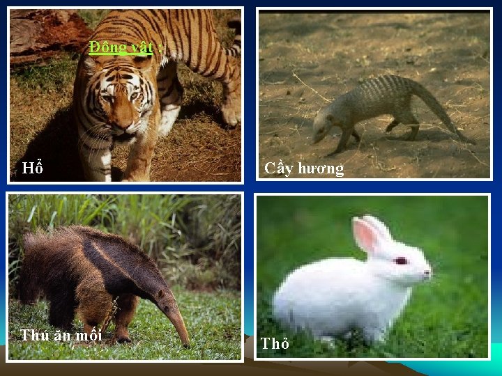 Baûng 51. 3: Thaønh phaàn ñoäng vaät trong rừng nhiệt đới Loaøi coù nhieàu Loaøi coù ít caù theå nhaát caù theå Loaøi coù ít nhaát caù theå Teân loaøi Giun đất, mối, Ong, bướm… kiến… Teân loaøi Thoû, raén, höôu… Hoå