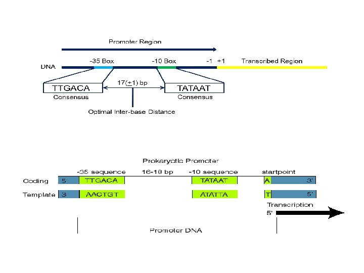 Identifications… promoter: a regulatory nucleotide sequences of DNA (40 -60 nts) at the beginning of every gene located upstream (towards the 5' region) of a gene (in prokaryote more than one gene shard the same promoter unlike Eukaryotic cell ), in this site the two DNA strand will opened but it is un translated area by providing a control point for regulated gene transcription. In prokaryotes, the promoter is recognized by RNA polymerase (δ sigma sub unite), this sub unit has a great affinity to bind to this region. There are great differences between promoter area of prokaryotic and Eukaryotic cell as it is divided to many sub regions.