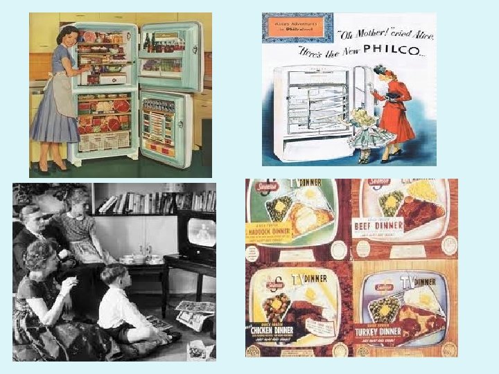 II. Consumerism & Conformity • 1/7 of income spent on entertainment • 1946 = 1 out of 18, 000 homes owned 1 TV vs. 1960 = 9 out of 10 homes own 1 TV • Advertising creates brand consciousness • TV celebrates conformity, family shows, teen idols, perfect mothers