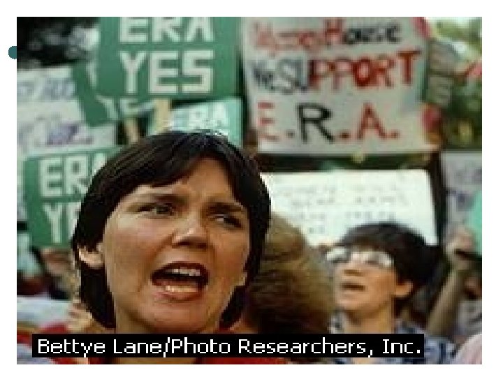 EQUAL RIGHTS AMENDMENT ¢ Equality of rights under the law shall not be denied or abridged by the United States or by any State on account of sex. ¢ Passed the House and the Senate ¢ Did not pass 2/3 of state legislatures ¢ Backlash by conservative women's groups.