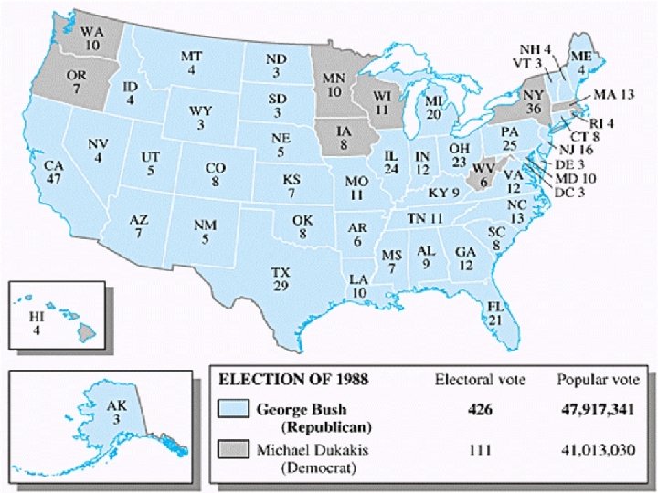 GEORGE H. W. BUSH • Despite the scandal, Reagan’s popularity remained high because of the improvement in Soviet-American relations and his V. P. George Bush won the 1988 election largely because of his connection to Reagan.