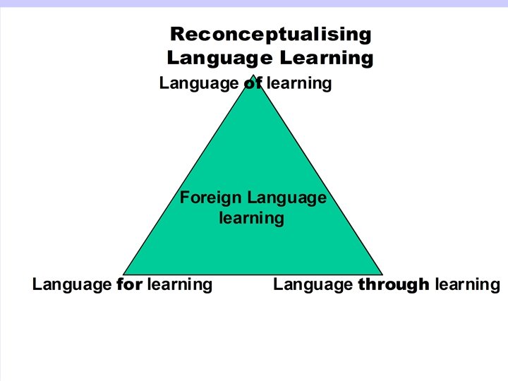 Using language to learn Learning to use language A 4 Cs teaching framework requires a re-conceptualisation of language from language learning per se towards an integrated model which actively involves the learner in using and developing • Language of Learning • Language for Learning • Language through Learning