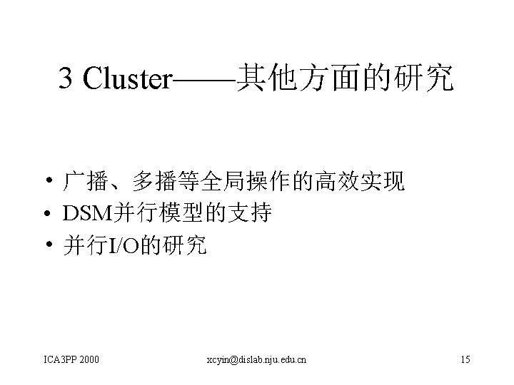 会 议 承 办 单 位 • • Deakin University, Australia City University of Hong Kong, Hong Kong The Croucher Foundation IEEE Hong Kong Section ICA 3 PP 2000 xcyin@dislab. nju. edu. cn 2