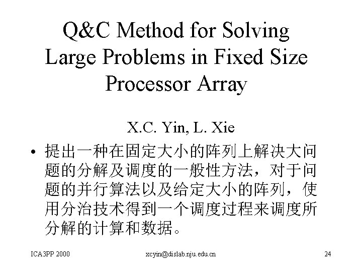 The 4 th International Conference on Algorithms and Architecture for Parallel Processing ICA 3 PP 2000 Hong Kong ICA 3 PP 2000 December 11 -13 2000 xcyin@dislab. nju. edu. cn