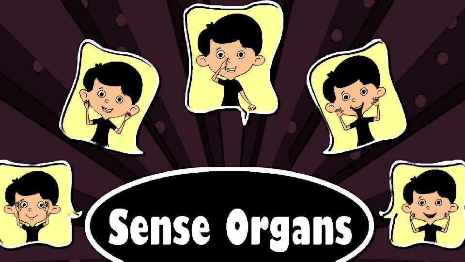 The 5 sense organs in our body are EYES, TONGUE, NOSE, EARS and SKIN. These sense organs help us to see, taste, smell, hear and touch.