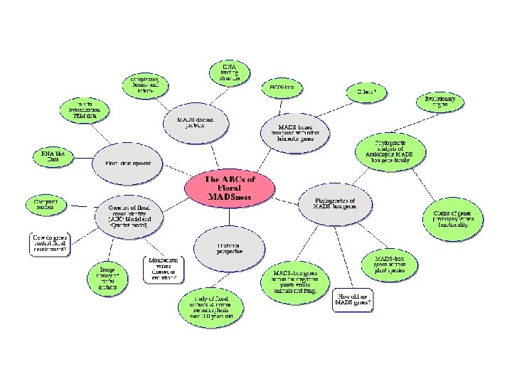 Concept Genetic control of development Evolution and diversification of developmental programs Questions Are MADS genes found in fungi, animals, other eukaryotes? What is the function of MADS genes in these species? How old are MADS genes? Resources Thoughtfully constructed sequence library of MADS genes Biology Workbench NCBI tools Background references