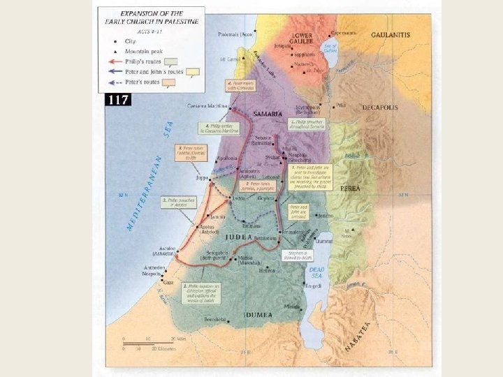 Acts 1: 8 An outline for the growth of “the new way” (9: 2) You will receive power when the Holy Spirit has come upon you; At Pentecost, the gift of the Holy Spirit fulfills this (2: 1 -13) and you will be my The preaching of Peter and others in witnesses in Jerusalem, Jerusalem brings about the witness there (2: 14 -8: 3) in all Judea and Samaria, Persecution in Jerusalem forces Christians out into Judea; the Samaritan mission follows (8: 4 -25) and to the ends of the earth. Less clear, but it happens in many ways. The Ethiopian comes from a long way (8: 26 -40) Cornelius is the first gentile convert (10: 1 -11: 18) Paul arrives in Rome (28: 14)