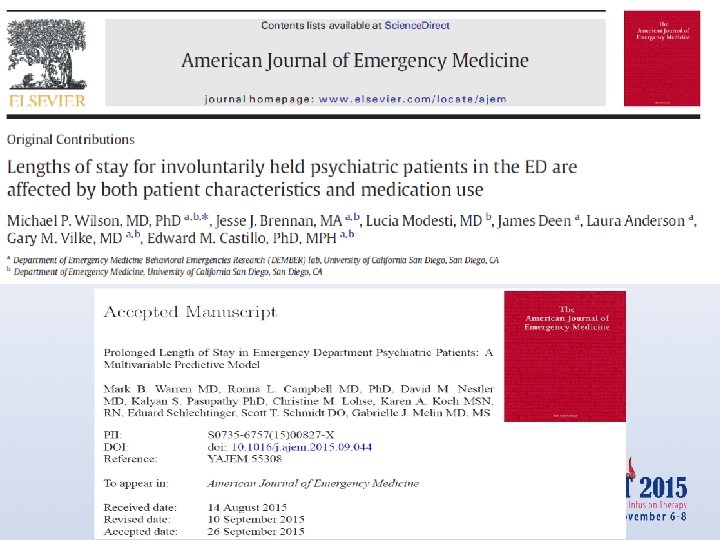 Restrained patients stay longer Weiss AP, et al. Patient and practice-related determinants of emergency department Length of stay for patients with psychiatric illness. Ann Emerg Med. 2012; 60(2): 162 -171.