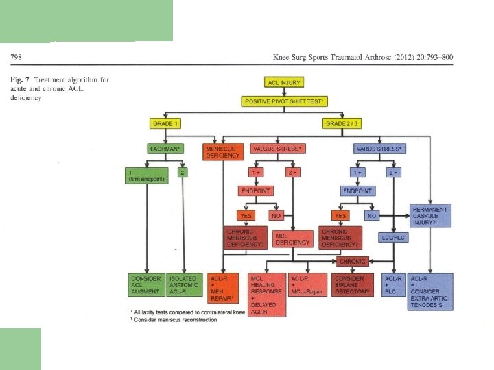 Results Isolated extra-articular tenodesis : only 50% of patients reported good to excellent results is no longer recommended ACL reconstruction and extra-articular tenodesis : 80 -90% good to excellent results Dodds ( review )