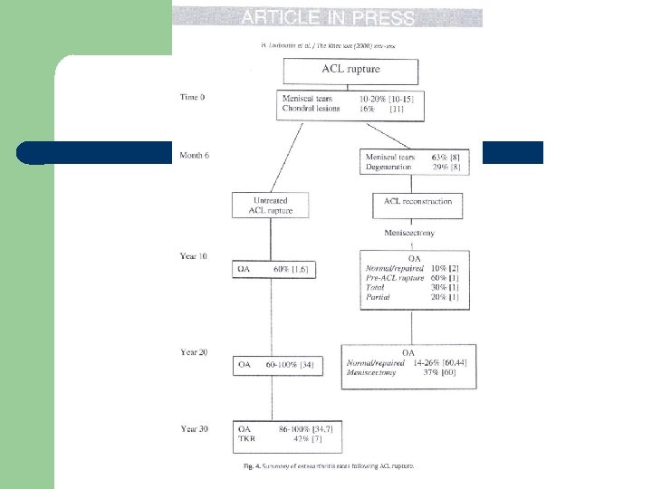 DEGENERATIVE CHANGES – O/A ACL reconstruction VS conservative treatment Risk factors : age sex BMI post injury time meniscectomy chondral lesions Type of graft technique