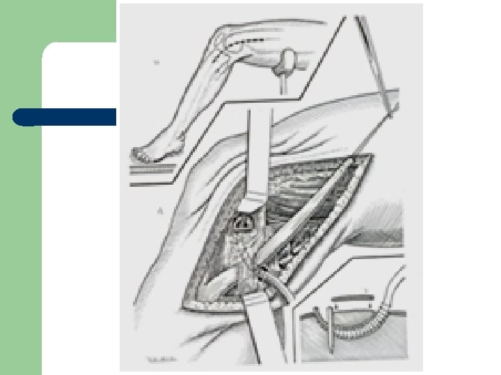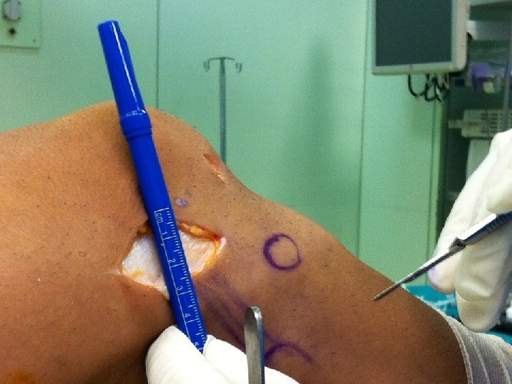 Mark of anatomical structures 4 -5 cm incision centered on the lateral femoral epicondyle Retaining of the thread suture of the intrarticular graft