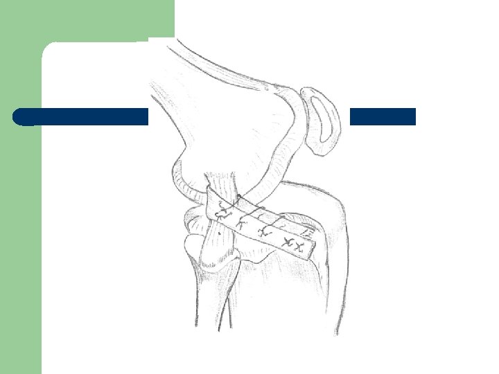 Τechnique Strip of ITT with restoration of the distal insertion at Gerdy΄s tubercle 10 -12 mm width and 12 -18 cm of length Fixation : posterior and proximal of the insertion of the LCL – at the end of the lateral intramuscular septum ( Krakow f 9 point ) Monoloop ( shorter graft ) , doubleloop , tripleloop. fixaton in 30ο or 90ο flexion and the tibia in neutral position or external rotation The ITT strip is twisted 180 o