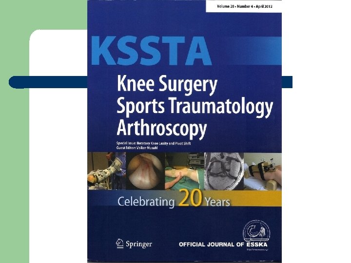 CONCOMITANT INJURIES 20 meniscal injury 14 lateral 6 medial 8 chondral injuries 7 ICRS < II 1 ICRS III