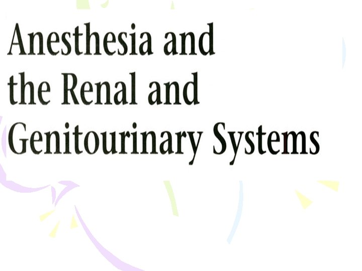 • Sympathetic stimulation as a result of surgery can increase vascular resistance and reduce renal blood flow, whereas anesthetics may reduce renal blood flow by decreasing cardiac output.