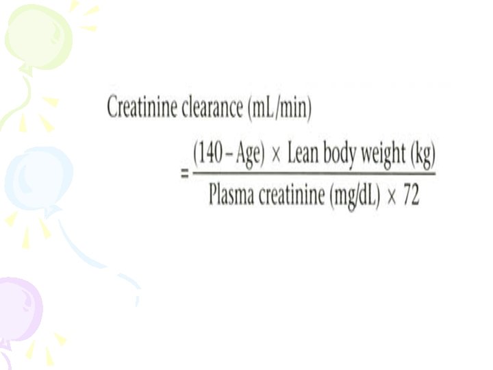• Serum creatinine measurements reflect glomerular function and creatinine clearance is a specific measure of GFR.