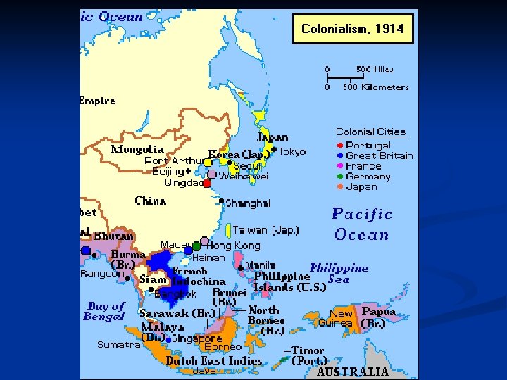 Imperialism in Southeast Asia n European Powers Invade the “Pacific Rim” n Lands of Southeast Asia that border the Pacific Ocean n Britain – Malaysia, Burmia, and Singapore n Netherlands – Indonesia n France – Indochina (Vietnam, Laos, Cambodia) n Why? Land perfect for establishing trading and military posts n Excellent for plantation agriculture n