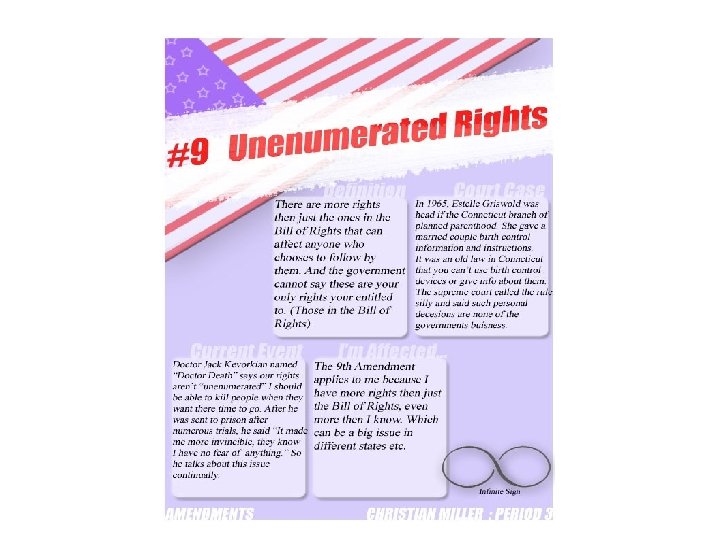 9 th Amendment • Powers reserved to the people. (There are more Civil Rights than what may be listed in the constitution.