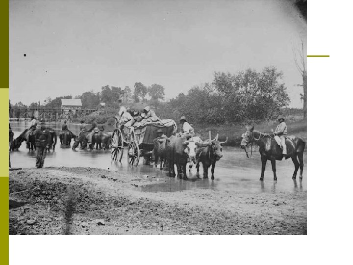 Goals Expand: Emancipation Deprive the South of a work force n Gain greater support from abolitionists and anti-slavery n Use African Americans to fight: organize black regiments and provide support for the Union n Prevent the South from getting foreign aid EFFECTS: n Encourages more slaves to leave plantations (a process that had already started) n Broader, more clearer purpose n Huge boost to Union n