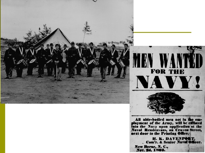 Northern Advantages p p Advantages of the North: 16, 000 in army; Congress authorized spending for 500, 000 troops n Greater amount of industry n Better RR’s & roads, ports & harbors n Larger population (more workers & soldiers) n Control of navy n An established government in place under Lincoln