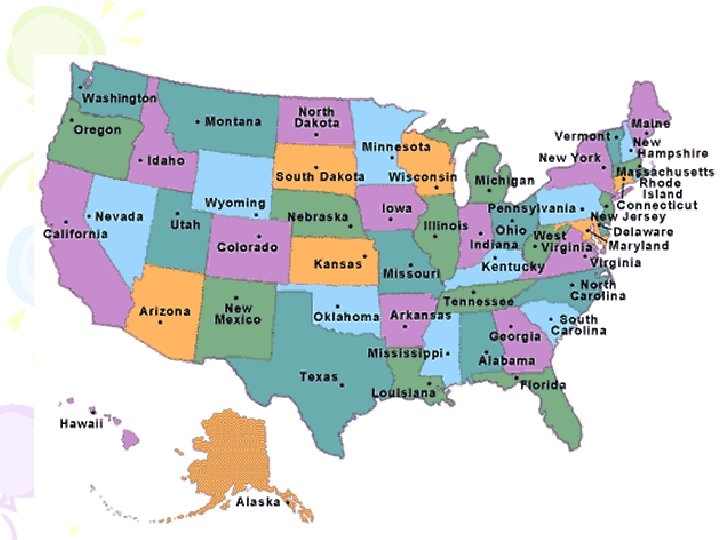 Interesting State Facts • Nevada = Only State that has legalized prostitution – Brothels are heavily regulated • Utah = has the largest population of Mormons – Main church = The Church of Jesus Christ of Latter-day Saints • Hawaii = used to be it’s own country as a monarchy • Texas = used to be part of Mexico • Massachusetts = the only States that legalizes same-sex marriage • Washington D. C. = the countries capital – Not a State but a district – Mostly African Americans live there